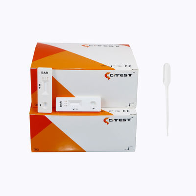 La cassette rapide d'essai de BARRE (urine) est un immunoessai basé sur le principe de l'attache concurrentielle. Les drogues qui peuvent être présentes dans l'échantillon d'urine concurrencent le conjugué de drogue pour des accepteurs sur l'anticorps.
